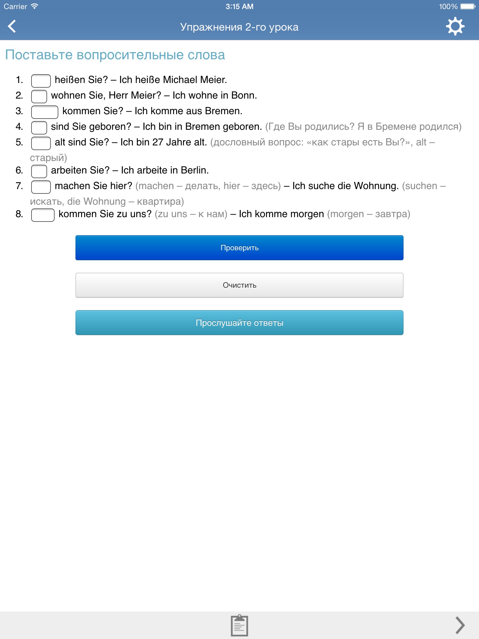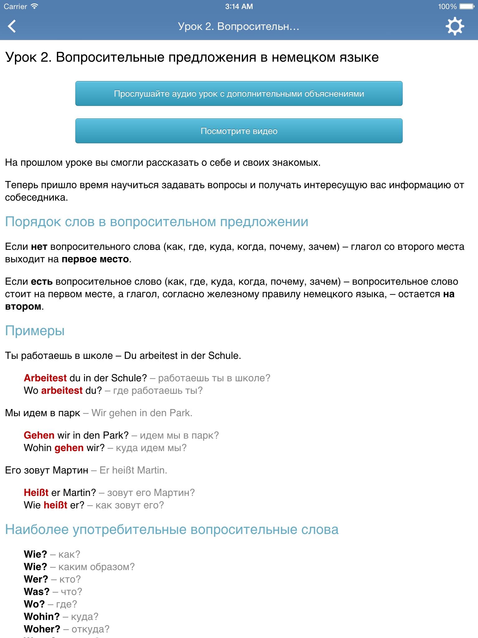Отличное приложение для тех кто только начал знакомится с немецким языком. Самое необходимое, то есть базовые знания и грамматика, а главное все просто и понятно, сделано людьми и для людей. Нет рекламы, понятный и удобный интерфейс. Минус только один - это то что люди не сразу находят ваше приложение. Я узнал о приложении на сайте speakasap, и писал в поиске appstore speakasap а как оказалось оно называется совсем подругому. Курс можно пройти достаточно быстро но не стоит спешить удалять приложение со смартфона дабы освободить память, оно пригодиться для того что бы иногда заглядывать и поправлять свои грамматические ошибки если таковые имеются. Разработчикам огромное человеческое спасибо p.s Я никогда до этого не оставлял отзывы, но это приложение достойно моего времени)