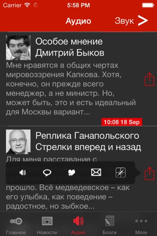 Приложение обеспечивает легкий доступ к новостям, звукам передач и блогам сайта Эхо Москвы www.echo.msk.ru