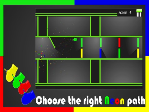 The more you play the more challenging the levels become! You will be facing multiple neon paths at a time and depending on the color you have you can reach only one of them. Thankfully, you have the ability to jump twice so all you need to do is to time your jumps perfectly. Also with the help of the Neon powerup you will be able to jump 10 times to aid you in your journey of choosing the right neon path.