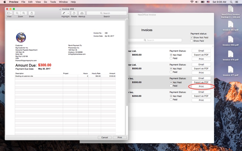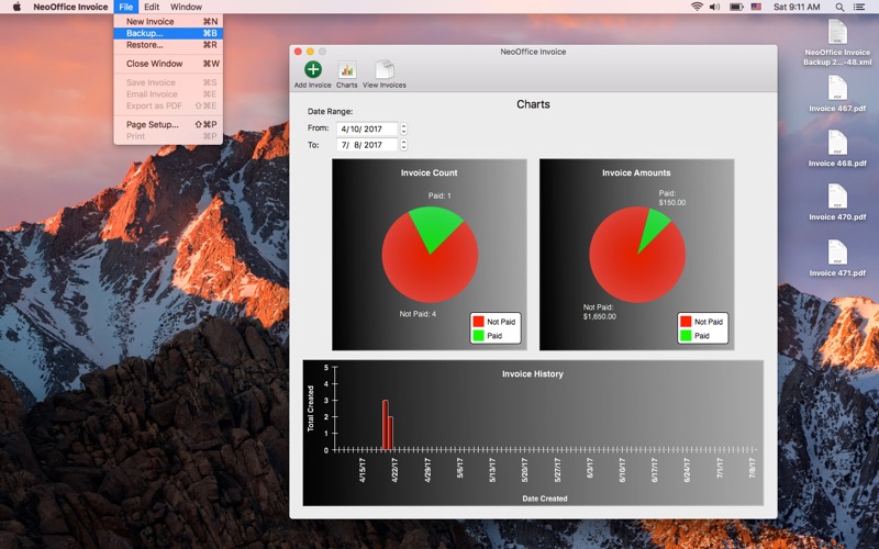 This is an extremely simple application with very few features, two of which do not work for me, i.e., Copy from Contacts and Email Invoice. Since there is a link above to NeoOffice Invoice Support I followed the link, and see no mention of NeoOffice Invoice anywhere, nor do I see any contact information for NeoOffice for ANY type of support. Snppet from NeoOffice web site: "Since providing user support consumes much of our funds,,,” That is one odd statement considering there is zero support being provided… Undecided as to whether I will keep the app and manually copy from contacts and manually email invoices, or request a refund from Apple. Pricing is pretty steep for a simple app that simply doesn’t meet expectations...