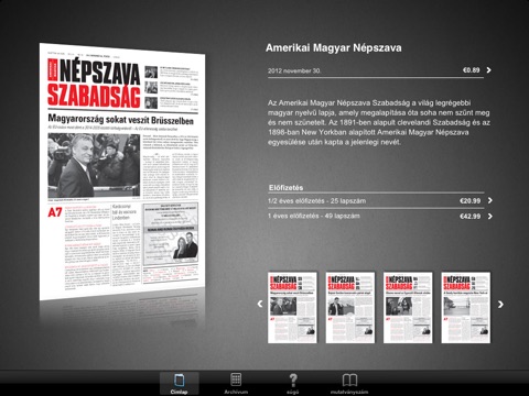 Az előfizetés az Ön iTunes account-ján keresztül történik. Az előfizetés automatikusan megújul, hacsak nincs ez az opció kikapcsolva legalább 24 órával az előfizetés lejárta előtt. Az előfizetés összege le lesz vonva az előfizetés lejárta előtti 24 órás időszakban. Az előfizetést kezelheti a felhasználó és az automatikus megújítást ki lehet kapcsolni a vásárlás után az Account Settings-ben. Már meglévő előfizetéstől nem lehet elállni az előfizetés ideje alatt. A mutatványszám ingyenesen elérhető, ugyanakkor az archívumban megvásárolható.