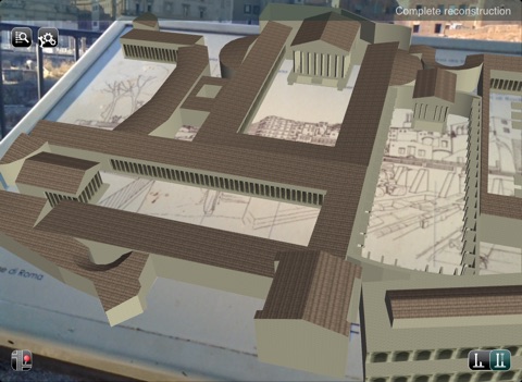 Print the AR card from Settings, then point the camera on the AR card to view a 3d augmented reconstruction of the Roman Imperial Fora projected on it.