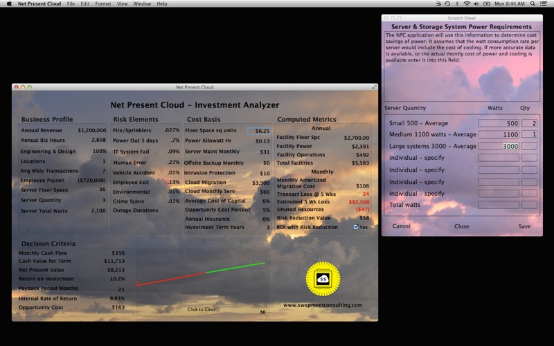 We are confident that if you are serious about evaluating a cloud deployment in place of your current in-house computing systems, you will find this application invaluable.