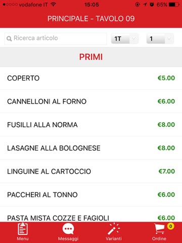 Con semplici azioni lapp da la possibilità di prendere comande per piatti e bevande. Le varianti (+mozzarella ecc.) si possiono abbinare ai singoli piatti o a interi gruppi (primi, secondi, pizza ecc.). Si possono creare menù alla carta o prezzo fisso in maniera semplici e veloce.