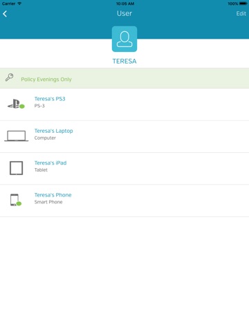 · Parental control – Enables you to apply one or more policies (created via the policy manager) to connected user devices.
