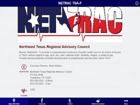 The Northeast Texas Regional Advisory Council (NETRAC) has developed an app to make information available on the website, as well as other sites, easy to access in the event of an emergency.