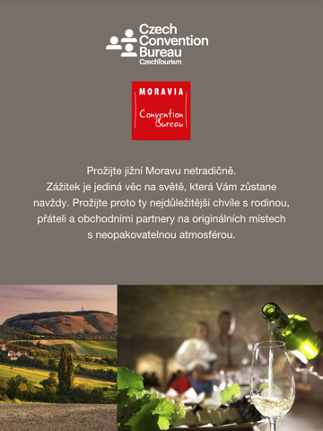 Multimediální publikace pojednává o netradičních lokalitách vhodných pro setkávání větších skupin lidí různých příležitostí jako např. svatby, oslavy, firemní akce, školení apod. Tento nástroj Vám pomůže snadno najít vhodné místo pro Vaši akci. Můžete vybírat z široké nabídky míst. Prožijte jižní Moravu netradičně. Zážitek je jediná věc na světě, která Vám zůstane navždy. Prožijte proto ty nejdůležitější chvíle s rodinou, přáteli a obchodními partnery na originálních místech s neopakovatelnou atmosférou.