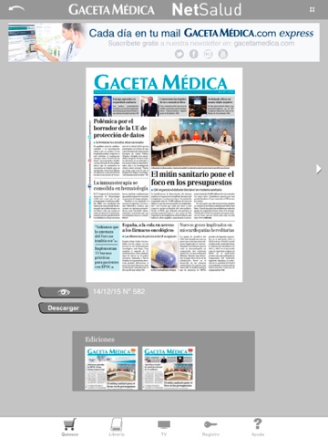 NetSalud es la primera aplicación gratuita de lectura digital multimedia e interactiva de publicaciones para el sector salud en soporte iPad y iPhone. En ella podrá encontrar los últimos números de las publicaciones de El Global, Gaceta Médica así como de otras publicaciones del sector sanitario. La aplicación permite la interacción con elementos multimedia, dotando a las publicaciones de un mayor interés y atractivo.