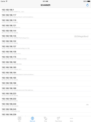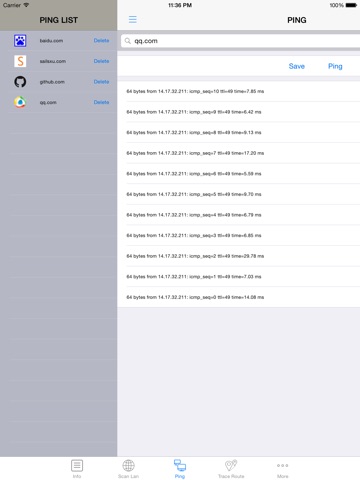 NetStat is equipped with a high-performance wifi device discovery, including all the devices addresses, manufacturers and names. Further, arbitrary server can be tested with the provided ping tool.