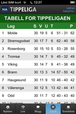 Få live-oppdateringer, nyheter, blogginnlegg, tabeller og terminliste direkte i en og samme app.