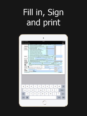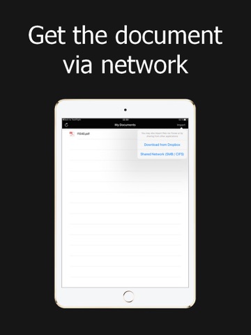 Using this application, download a PDF document via the network or from DropBox. Then fill in, sign and print.