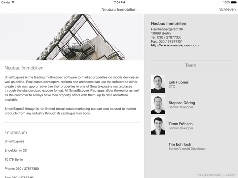 "Kataloge herumschicken war gestern. Mit der Neubau App lassen sich die Immobilien in der Exposé Form viel besser darstellen. Ich präsentiere meinen Kunden die Objekte fast nur noch über die App, da sich hier sogar 3d Rundgänge einbinden lassen. Einfach nur empfehlenswert" Thomas L. - Makler