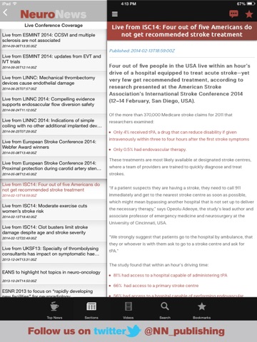 The NeuroNews app has exclusive content with live updates from key neuro conferences such as ABCWIN, ESMINT, ACINR, LINNC, European Stroke Conference, WFITN, EFNS and INS.