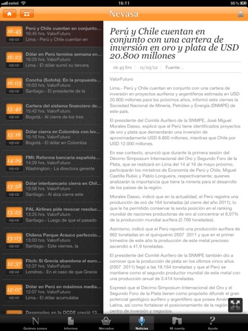 Con esta aplicación de NEVASA usted podrá acceder a toda la información de nuestra empresa y a noticias con la actualidad de los mercados, como índices, precios de acciones, mayores alzas y bajas y las acciones más transadas, entre otros temas. Además, tendrá la posibilidad de armar un portafolio a su medida y de esta forma, seguir de cerca sus inversiones junto a los principales índices de la economía en general.