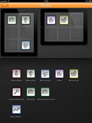 Como cliente de NEVASA tendrá acceso a la información de su portafolio de inversiones en línea desde su Ipad o Iphone y a los Informes que semanalmente prepara el Departamento de Estudios de la compañía, con recomendaciones y visión del mercado, usando la misma clave de internet que utiliza actualmente.