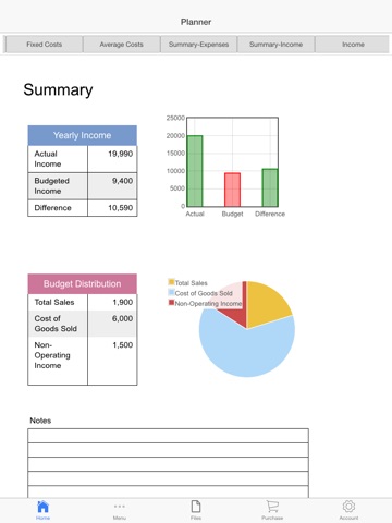 - Add and edit budgeted and actual entries for operating , non-operating income and cost of goods sold.