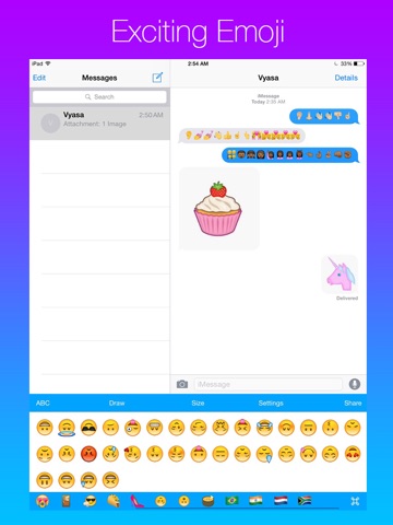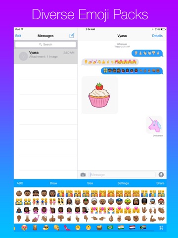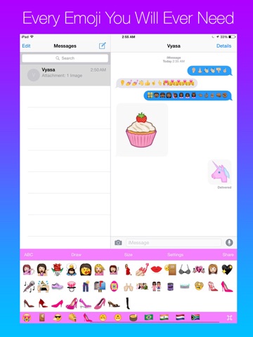 We have added a whole lot of emoji. Every emoji you want is here. Drawing is also possible on this keyboard so if there is an emoji that you need you can draw and send it. Its really amazing. This is the only emoji keyboard you will ever need. Certain Emoji Packs have to be unlocked through an In-App Purchase. Emoji works in chatting apps but you cant use them in Instagram comments.
