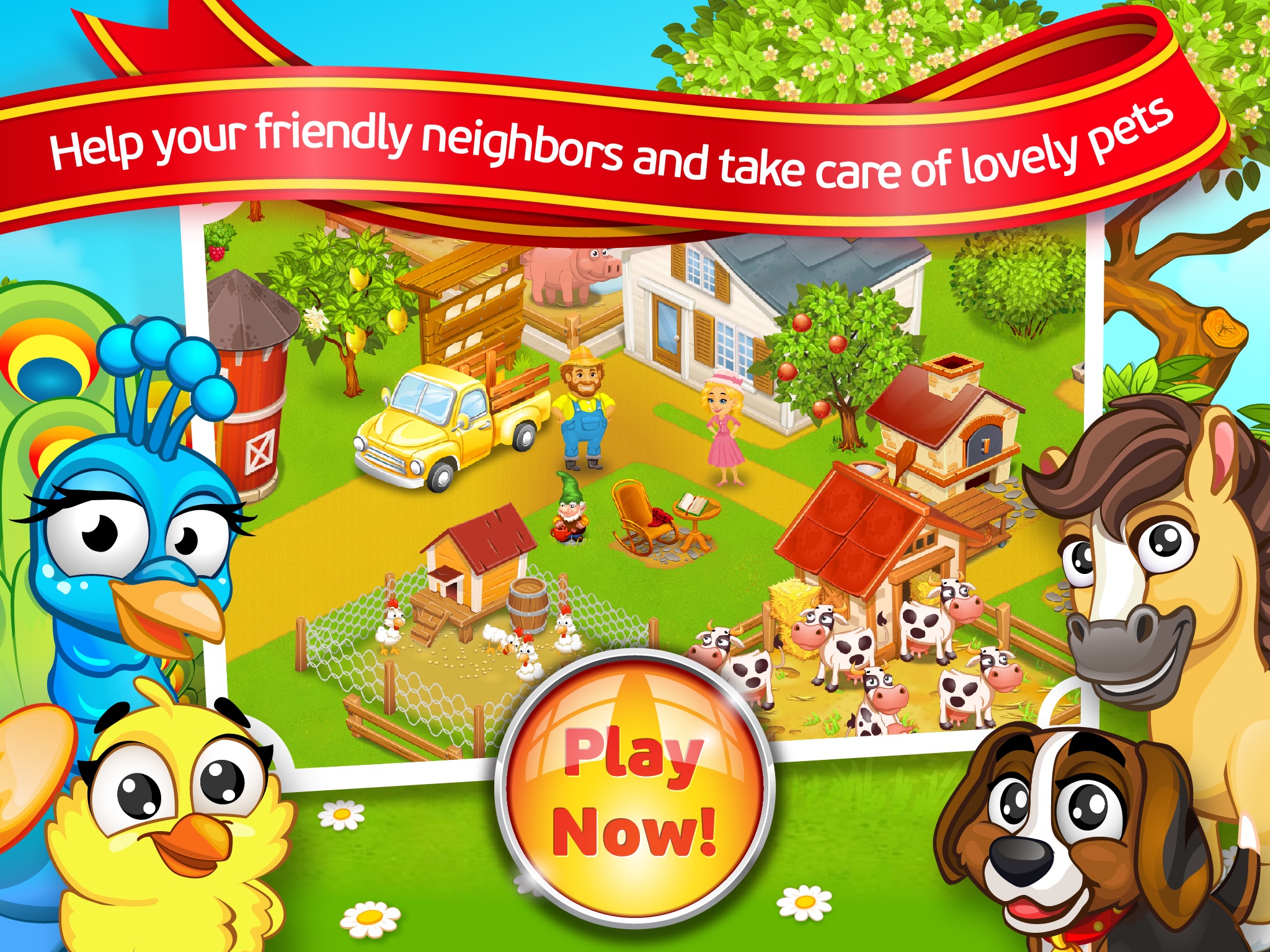 ----- Invite the friendly neighbors to your happy farm.