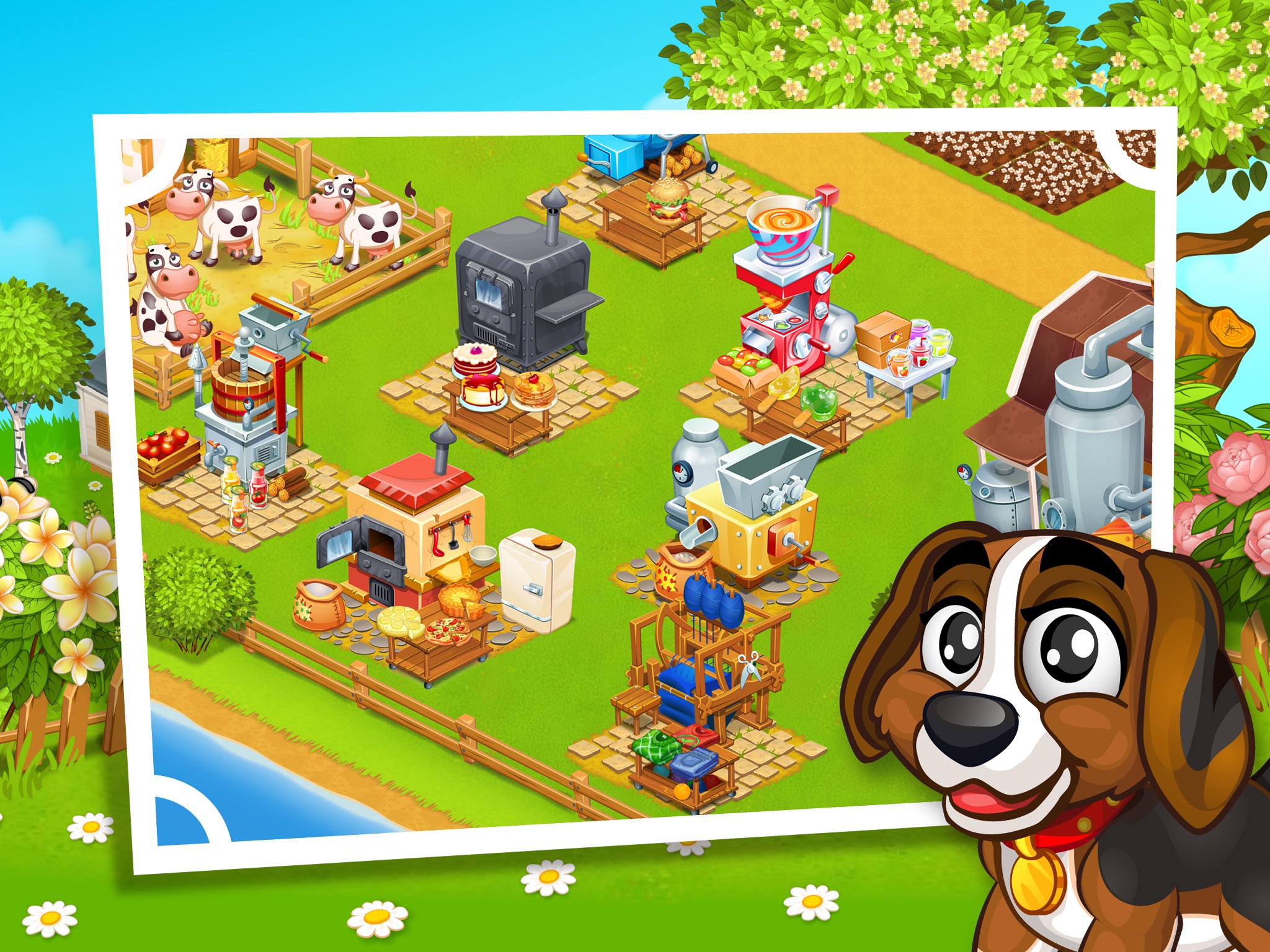 You will have the opportunity to grow a variety of crops, hay, hayday , vegetables, fruits, and berries on your farm ville. Equip and develop your farm, take care of the cute pets and help your neighbors. Gather resources and open up production to bring your farmville to prosperity.