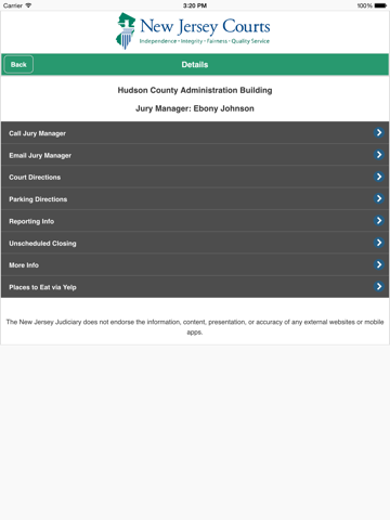 Welcome to the New Jersey Juror App. From being up to date with the Judiciary news to being given turn-by-turn directions to your assigned courthouse, this New Jersey Jury Mobile application is designed to make your experience as part of the New Jersey jury system simple and convenient.