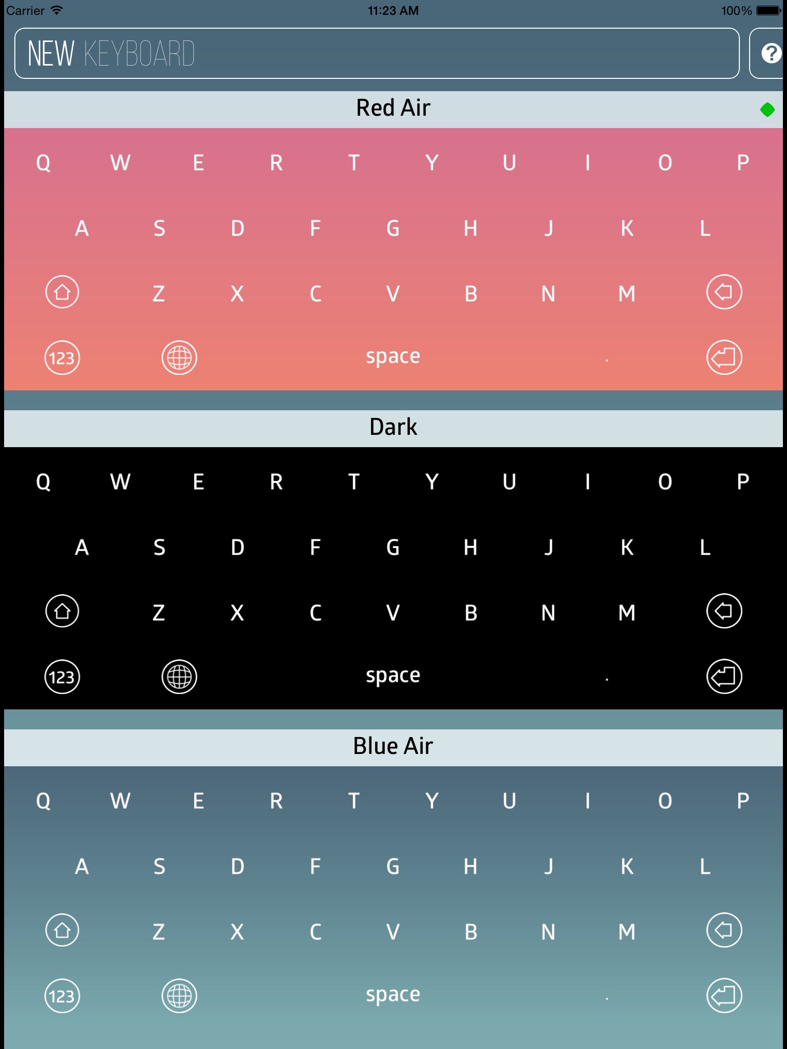 We are about to add more themes soon! No boring ads, just a beautiful, plain keyboard, allow full access only if you want keyboard sounds.