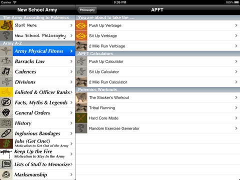 All U.S. Army Soldiers put down your chem light batteries, raise your non-firing hand and download this app! Celebrate Army culture with the New School Army~ This app is a random grab back of Army humor, culture, philosophy and some oddities we found along the way.