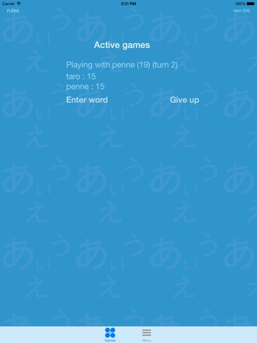 Each game is 60 turns - 30 turns each. The player who gets the most points win. The points you get are decided by the stroke count of each character. You can see how many points each letter gives you by klicking the "?" on the game screen.