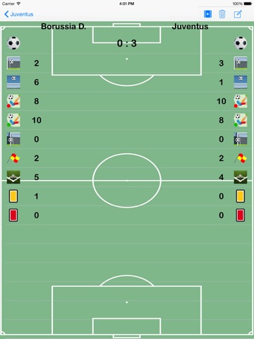 You can record Goals, Fouls, Yellow Cards, Red Cards, Attempts, Attempts on target, Goal Posts, Offsides, Corners.