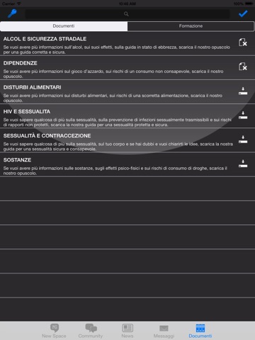 New Space è una nuova applicazione che ti permette di contattare in forma privata e riservata gli operatori dei servizi pubblici per informazioni qualificate su sessualità e contraccezione, malattie sessualmente trasmissibili, uso e abuso di sostanze, servizi sociali e problemi affettivi e familiari.