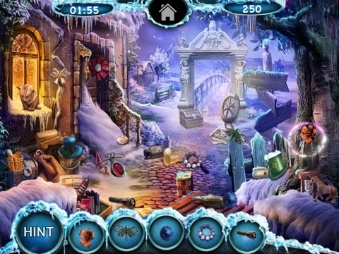 Find all the hidden items hiding within the Christmas & winter themed scenes.