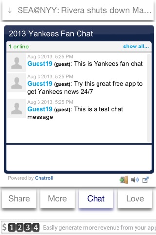 Free iPhone app features Yankees news updated hourly 24/7. We scan thousands of sources every hour to bring you that latest Yankees news and scores as soon as possible. See the Yankees Twitter and Facebook feeds. Participate in live fan chat. Share the app and articles through text, email, and social media. Features a stadium finder to help you find your way to Yankee Stadium.