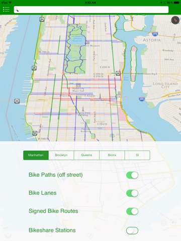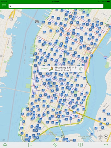 Doesnt give direction like NYC spokes does and doesnt give a full map like NYC bike map app does. However the layers are nice, though playing with them causes the app to crash. Im going to give this a shot and leave it on my phone until it gets an update. Its got potential.