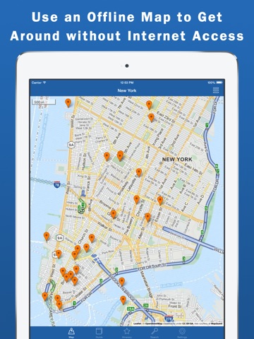 Get a full offline travel guide and map for New York City, USA.