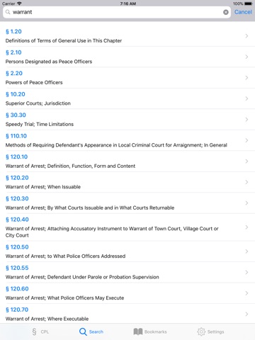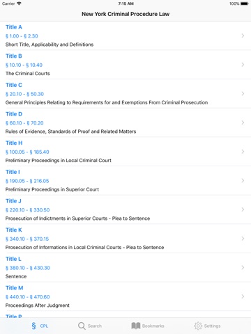 Organized in an easy-to-navigate fashion, the NYCPL app provides fast, searchable, offline access to the statutory text of every one of the more than 560 sections of the criminal procedure law.