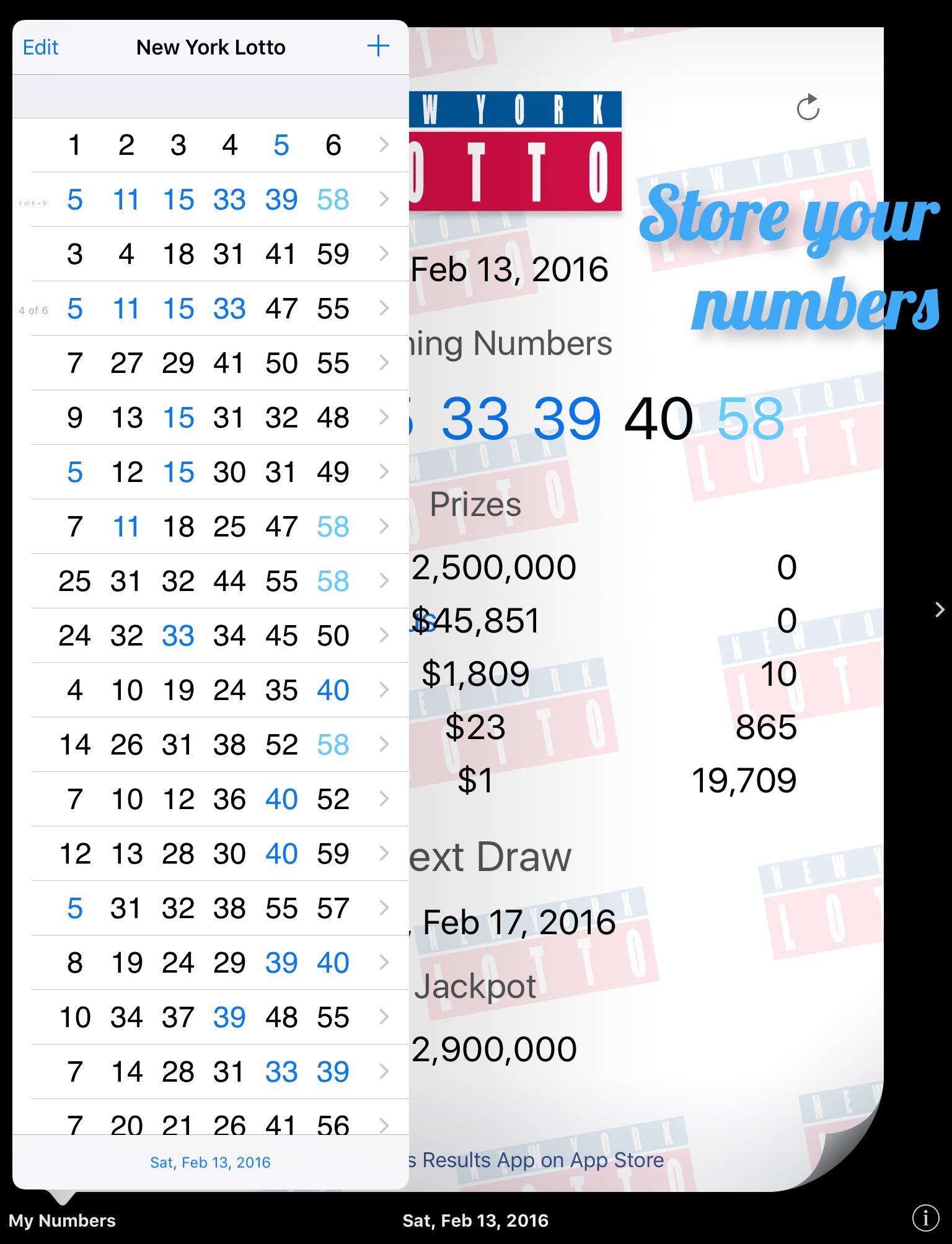 - View Lotto results with your favorite Lotto numbers highlighted.