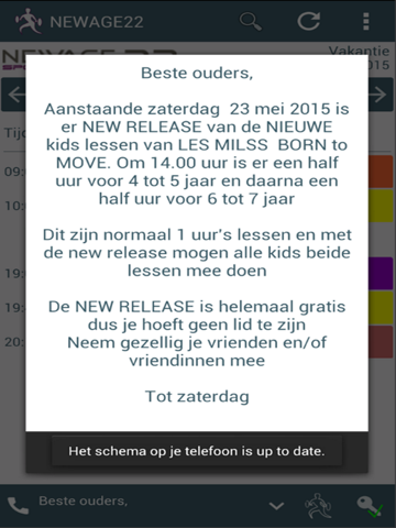 Bekijk het actuele rooster van Newage22 Sportlounge. Indien je dit wenst kun je een actief bericht ontvangen als er zich plotseling een wijziging voordoet. Lees de effecten van je workout op je conditie. Stel samen met je personal trainer een fitness schema op en houd je vorderingen bij op je apparaat.