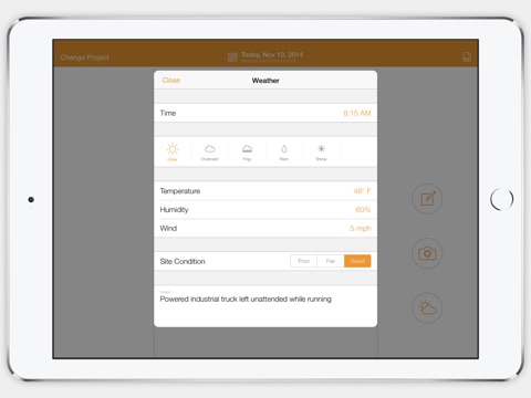 Newforma® Field Reports App provides construction and design teams an intuitive onsite solution for summarizing their project current conditions and events. Using a simple and intuitive interface, construction professionals can record key projects conditions including headcount, equipment, weather and field observations with convenient report distribution from anywhere, at any time.