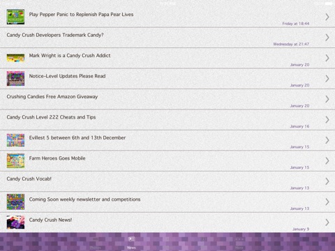 Sweet! Welcome to the Candy Crush News app! With this beautifully designed news app stay up-to-date on the latest and greatest for this incredibly fun and addicting App Store puzzle game. If you’re interested in up to the minute coverage and how-to videos from YouTube to get past levels you’re stuck on, then this app is for you!
