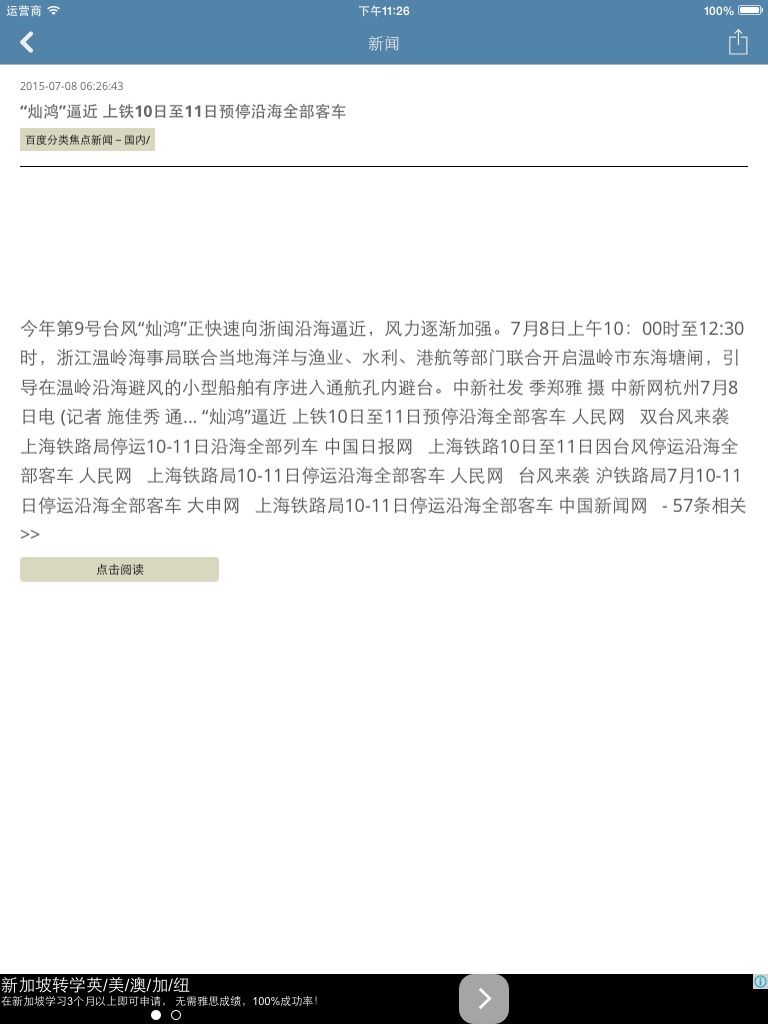 This news reader includes tens of main news resources (hundreds of sections) from all over the world. Simply move your fingers, you can read the latest & fastest news worldwide.