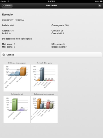 Permette di visualizzare le statistiche dellinvio delle newsletter, anche tramite grafici.