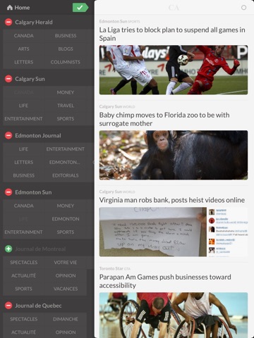 Get the news from the most important Newspapers in Canada like Calgary Herald, Calgary Sun, Edmonton Sun, Journal de Montreal, La Presse and many more.