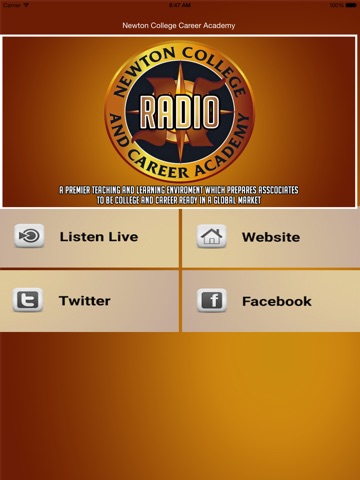 This app includes the Newton College & Career Academy radio , website, twitter & facebook pages.