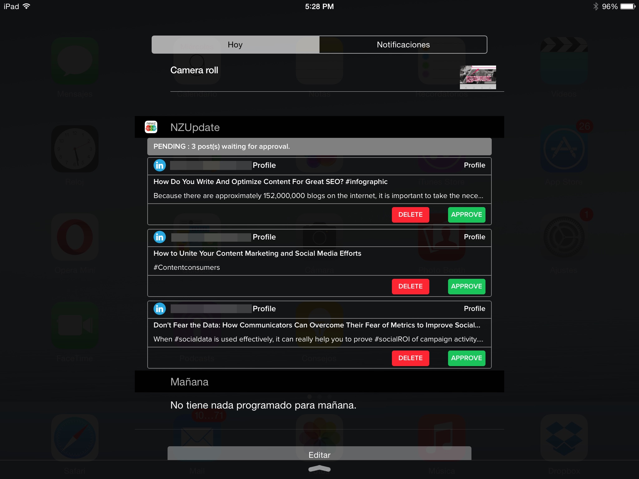 * Today Extension – displays social posts for you to approve