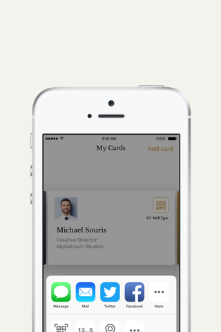 • Share your card externally via text and e-mail.