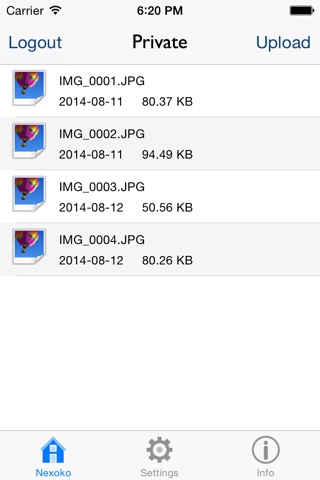 This app provides easy management of your digital assets stored on NexOkO. It allows you to upload, view and delete photos, music files, etc..