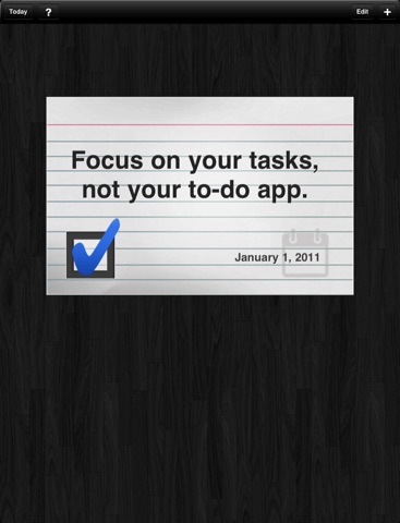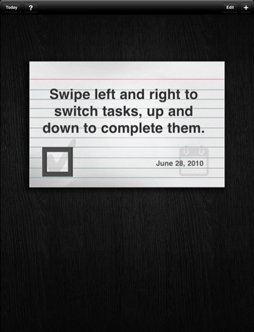 Rotate your iPad to portrait view to clear away distractions and spotlight your current task. When youre done, swipe down to complete that task and across to move to the next one. Simple and speedy.