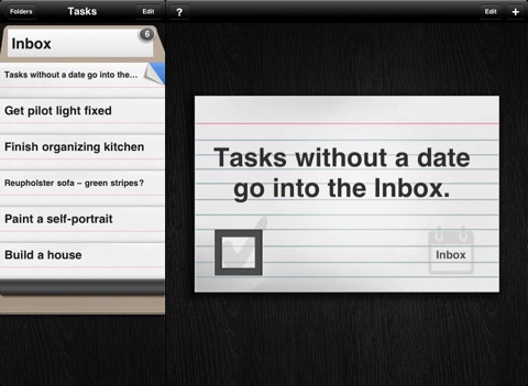 Dont worry about setting up categories, projects or contexts. Even dates are optional—enter only as much information about a task as you want to and edit it at any time.