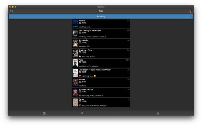 • Track what you’re currently watching, where you’re watching it (#netflix, #amazon, #hbo, #hulu, etc), and what’s... Up Next!