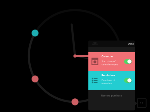 Nexts shows whats up in your next 12 hours by overlaying the Calendar and Reminders on a simple analog clock face.
