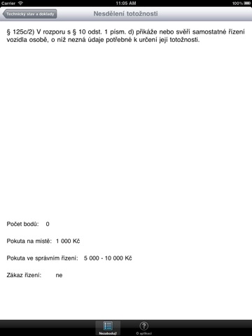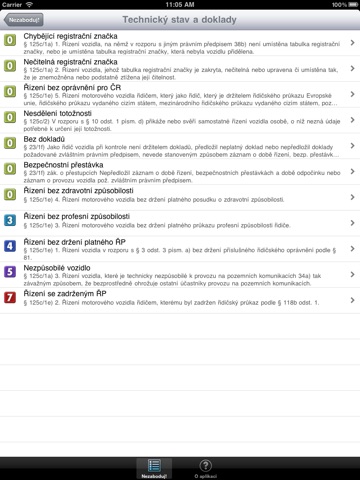 Aplikace obsahuje přehledně uskupené výtažky ze silničního zákona s ohledem na bodový systém. Zjistěte, kolik bodů získáte za jaké přestupky. Mějte aplikaci při ruce v momentě silniční kontroly, ať víte, v jakém rozmezí se může pohybovat výše pokuty. Aktualizováno ke dni 1. 8. 2011